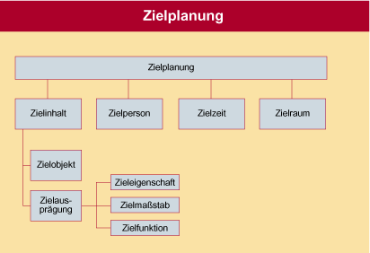 Um das Phänomen „Ziel“ zu differenzieren und in einzelne Aspekte aufzuspalten, sind in der betriebswirtschaftlichen Forschung zahlreiche Ansätze entwickelt worden. Für die Zwecke der Zielplanung eignet sich besonders der Ansatz der Zielelementarisierung, der auf dem Konzept der Zieldimensionen aufbaut. Durch die Elementarisierung des Ziels wird deutlich, welche Zielbestandteile, einer besonderen Planungsanstrengung bedürfen. Die Zielelementarisierung führt zu folgender Differenzierung: