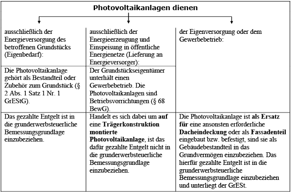 Danach ist der auf thermische Solaranlagen/Solarkraftwerke entfallende Teil des Kaufpreises in die grunderwerbsteuerliche Bemessungsgrundlage einzubeziehen und unterliegt der GrESt.